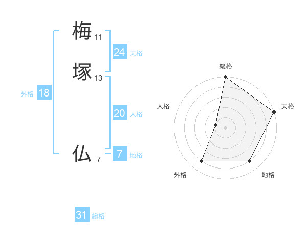 梅塚 仏さんの総格は31画の5点!