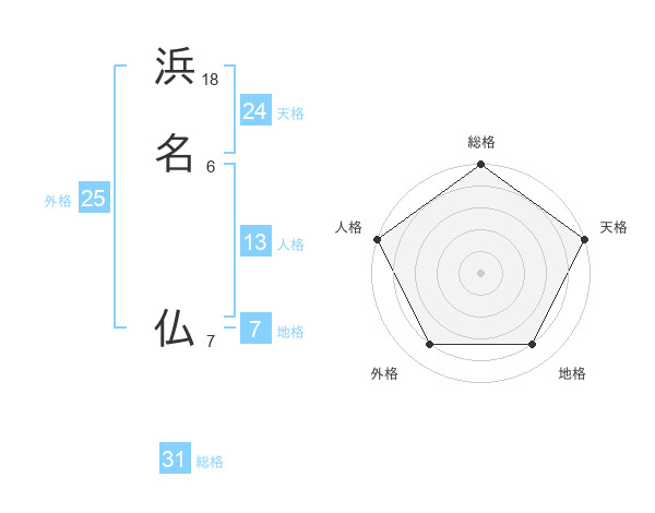 浜名 仏さんの総格は31画の5点!