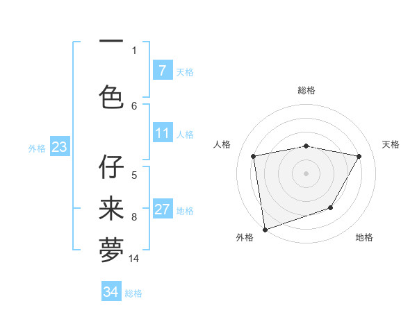 一色 仔来夢さんの総格は34画の2点!