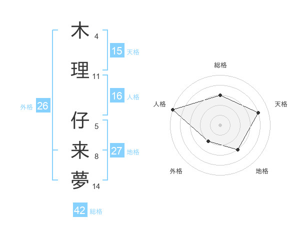 木理 仔来夢さんを姓名の画数から五運を鑑定