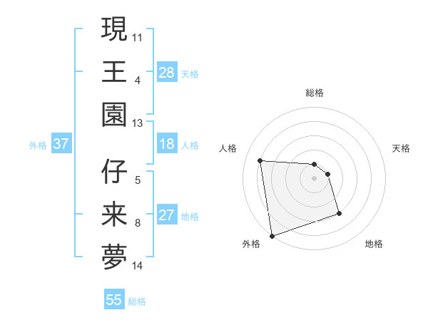 現王園 仔来夢さんを姓名の画数から五運を鑑定
