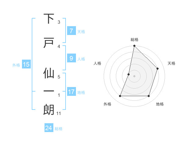 下戸 仙一朗さんを姓名の画数から五運を鑑定