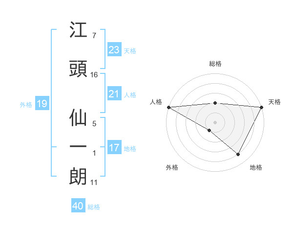 江頭 仙一朗さんを姓名の画数から五運を鑑定