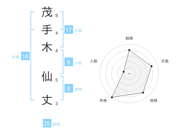茂手木 仙丈さんを姓名の画数から五運を鑑定