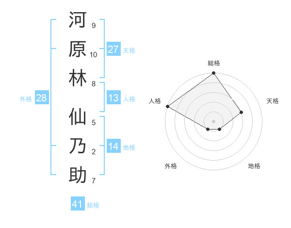 河原林 仙乃助さんを姓名の画数から五運を鑑定