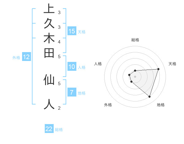 上久木田 仙人さんを姓名の画数から五運を鑑定