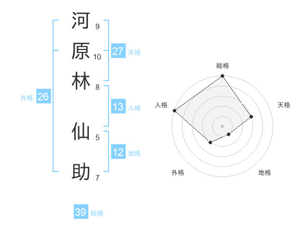 河原林 仙助さんを姓名の画数から五運を鑑定