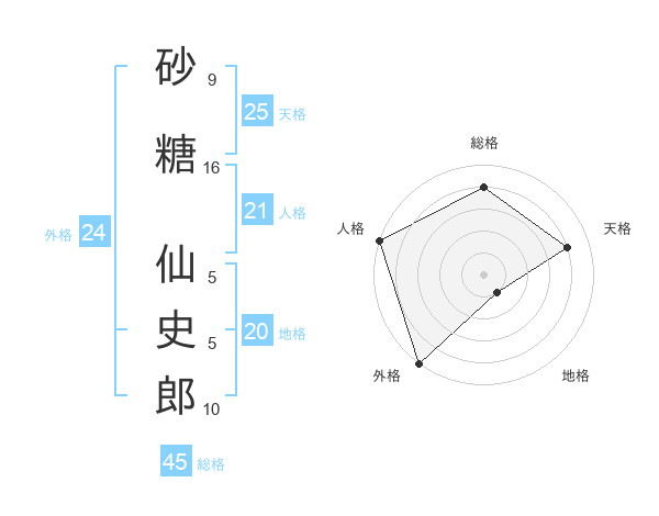 砂糖 仙史郎さんを姓名の画数から五運を鑑定