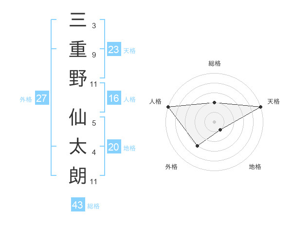 三重野 仙太朗さんの天格は23画の5点!