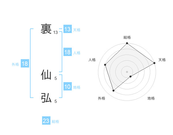 裏 仙弘さんの天格は13画の5点!