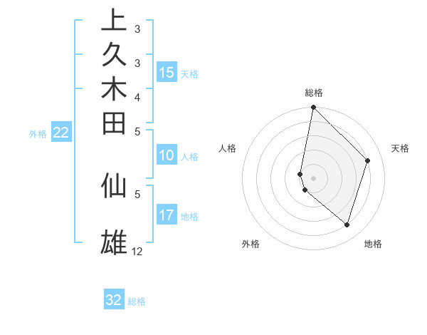 上久木田 仙雄さんを姓名の画数から五運を鑑定