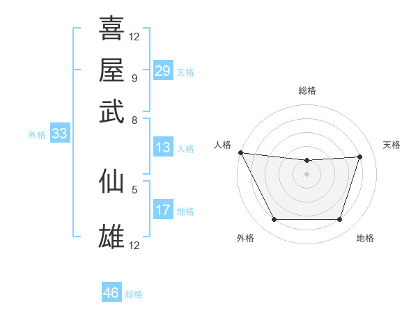 喜屋武 仙雄さんを姓名の画数から五運を鑑定