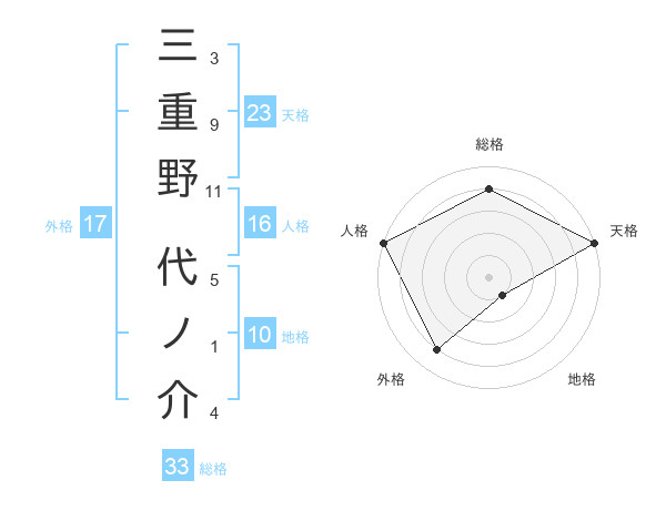 三重野 代ノ介さんを姓名の画数から五運を鑑定