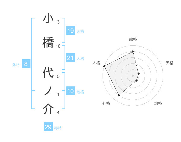小橋 代ノ介さんを姓名の画数から五運を鑑定