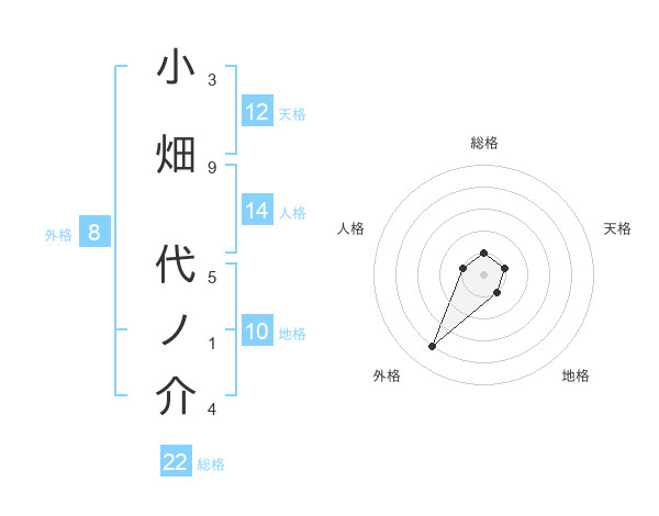 小畑 代ノ介さんを姓名の画数から五運を鑑定