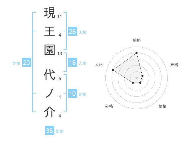 現王園 代ノ介さんの総格は38画の4点!