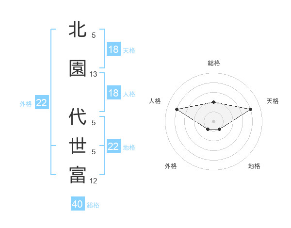 北園 代世富さんの地格は22画の1点!