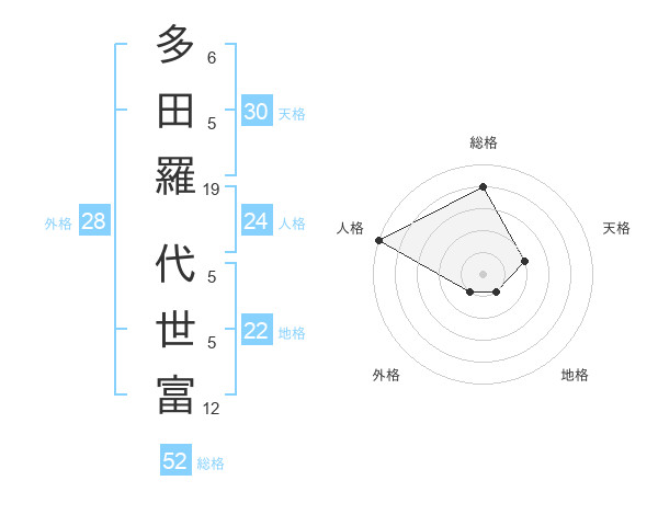 多田羅 代世富さんの総格は52画の4点!