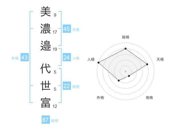 美濃邉 代世富さんを姓名の画数から五運を鑑定