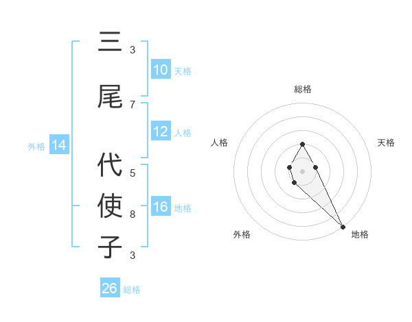 三尾 代使子さんを姓名の画数から五運を鑑定