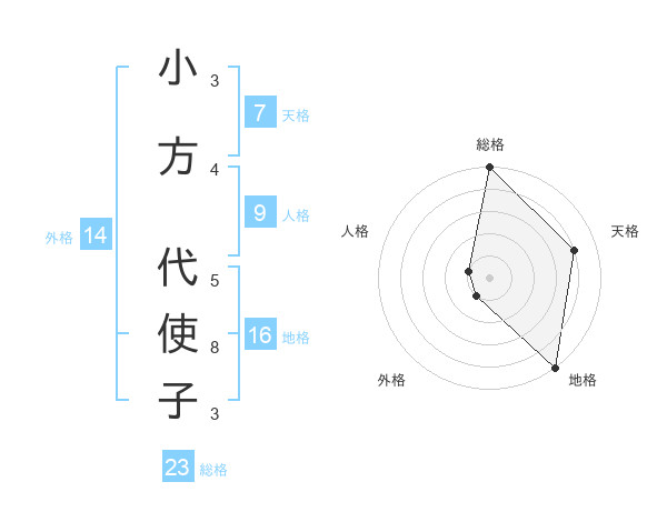 小方 代使子さんの総格は23画の5点