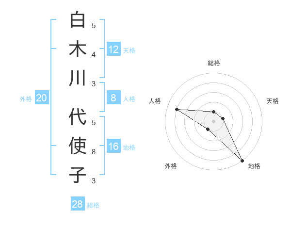 白木川 代使子さんを姓名の画数から五運を鑑定