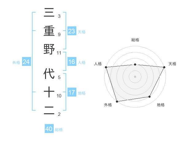 三重野 代十二さんを姓名の画数から五運を鑑定