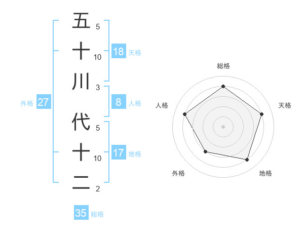 五十川 代十二さんを姓名の画数から五運を鑑定