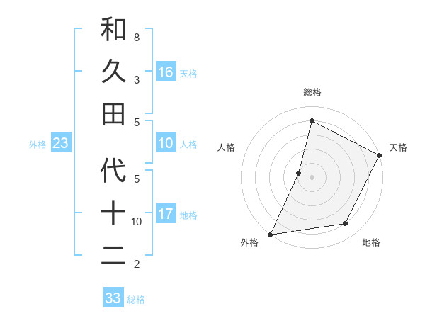 和久田 代十二さんを姓名の画数から五運を鑑定