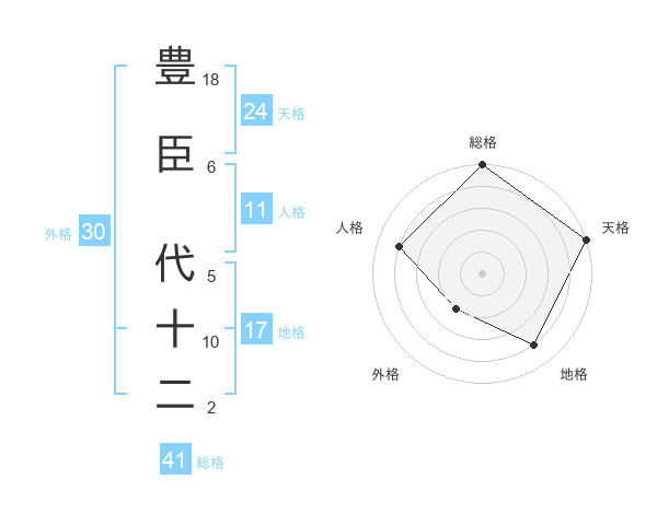 豊臣 代十二さんを姓名の画数から五運を鑑定