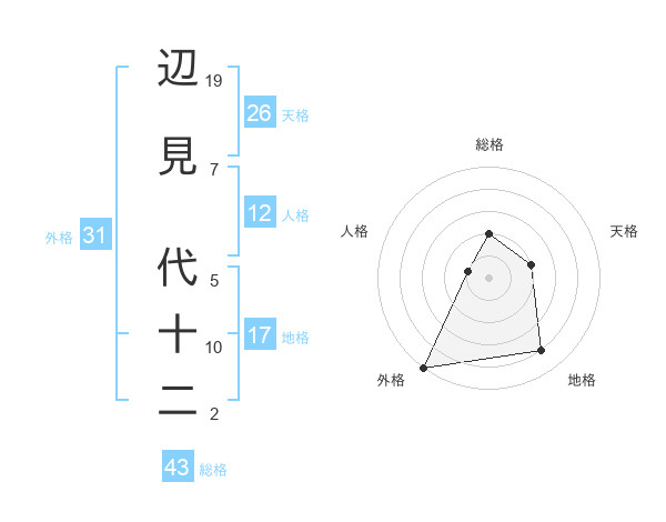 辺見 代十二さんを姓名の画数から五運を鑑定