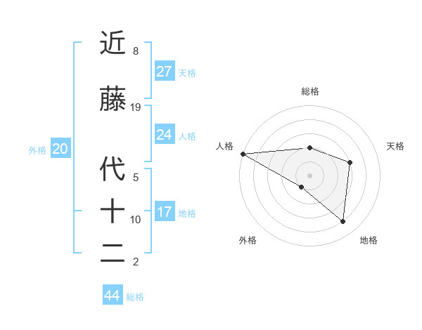 近藤 代十二さんを姓名の画数から五運を鑑定