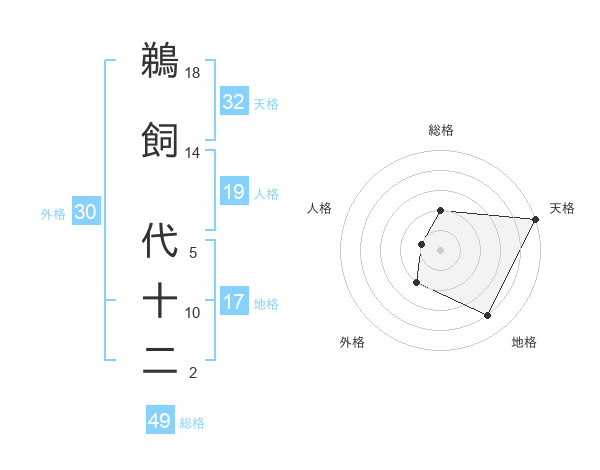 鵜飼 代十二さんの総格は49画の2点!