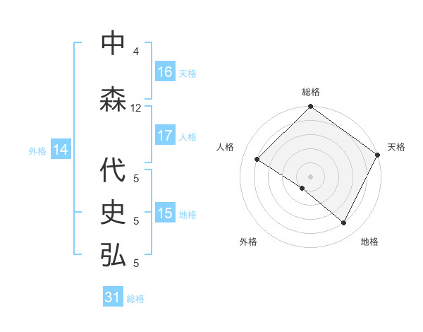 中森 代史弘さんを姓名の画数から五運を鑑定