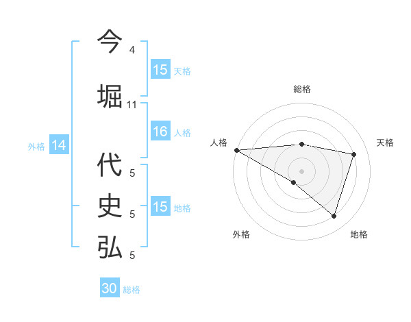 今堀 代史弘さんの地格は15画の4点!