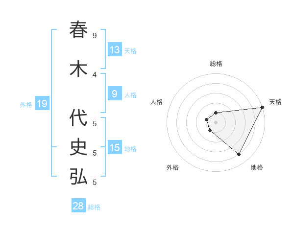 春木 代史弘さんを姓名の画数から五運を鑑定