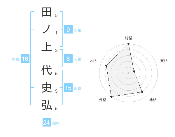 田ノ上 代史弘さんを姓名の画数から五運を鑑定