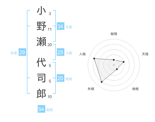 小野瀬 代司郎さんの総格は54画の1点!