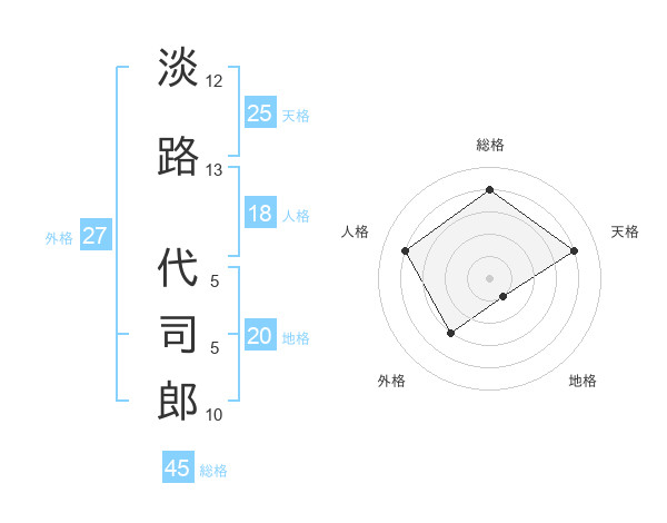 淡路 代司郎さんを姓名の画数から五運を鑑定