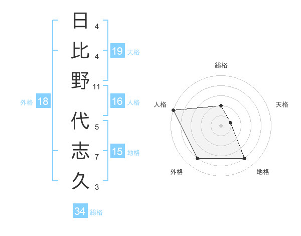 日比野 代志久さんを姓名の画数から五運を鑑定