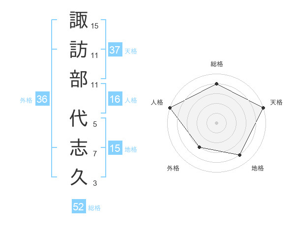 諏訪部 代志久さんの総格は52画の4点!