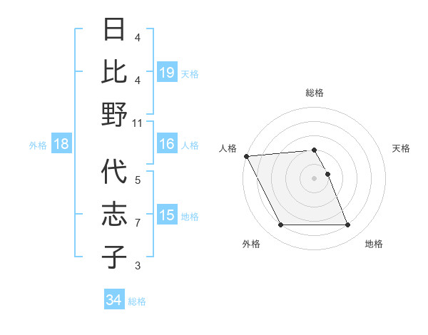 日比野 代志子さんを姓名の画数から五運を鑑定