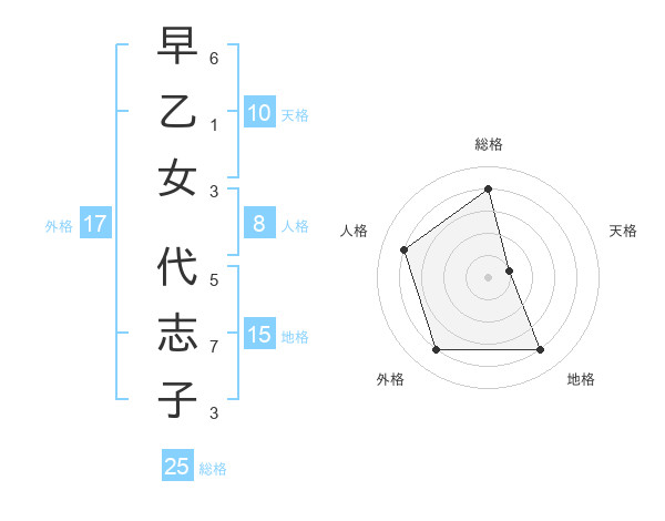 早乙女 代志子さんの総格は25画の4点!