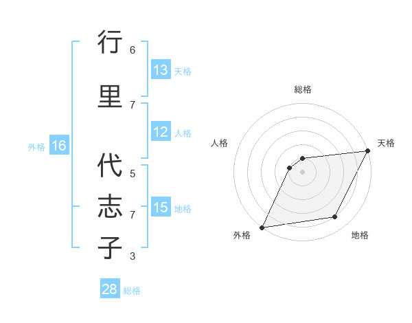 行里 代志子さんの外格は16画の5点!