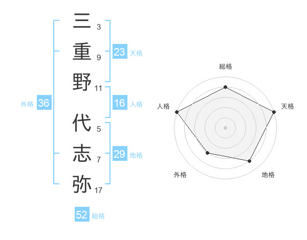 三重野 代志弥さんを姓名の画数から五運を鑑定