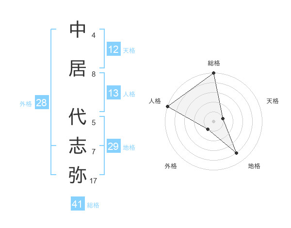 中居 代志弥さんを姓名の画数から五運を鑑定
