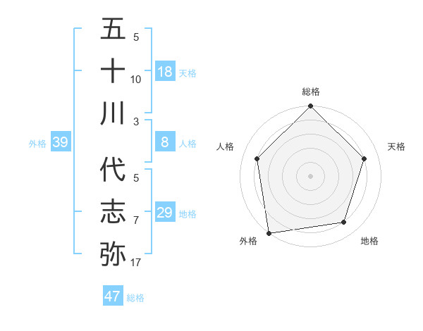 五十川 代志弥さんを姓名の画数から五運を鑑定