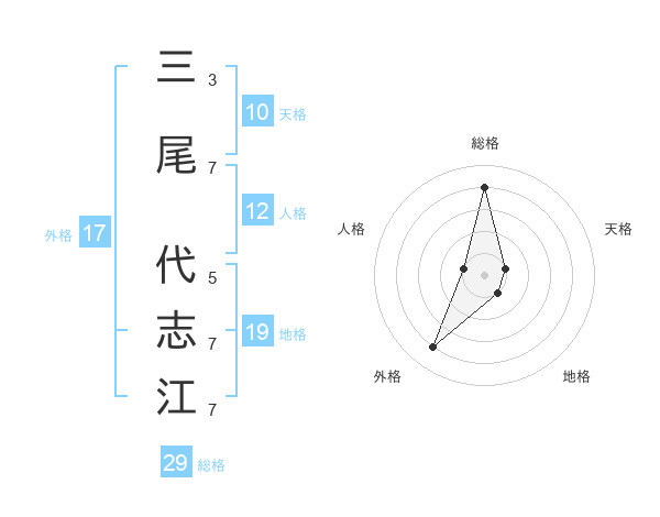 三尾 代志江さんを姓名の画数から五運を鑑定