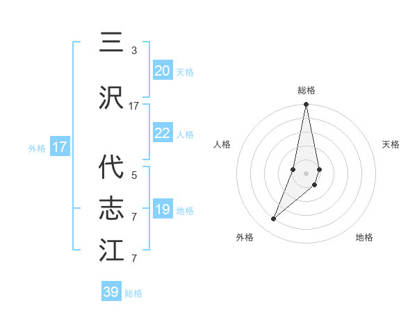 三沢 代志江さんを姓名の画数から五運を鑑定