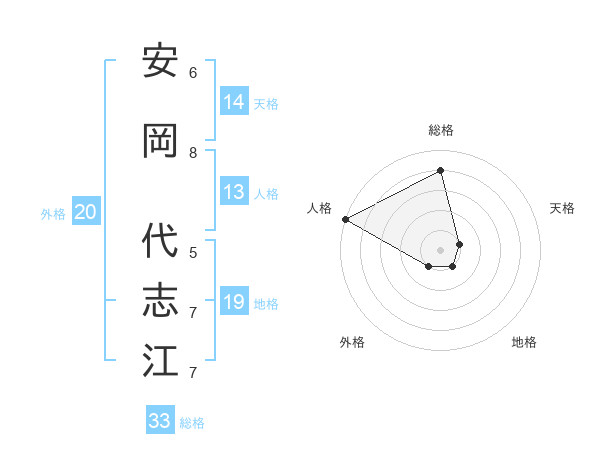 安岡 代志江さんを姓名の画数から五運を鑑定